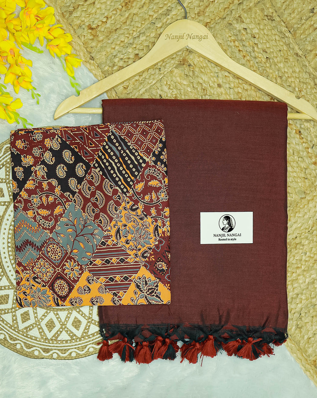 AALAM COMBO (KHRBNN25) - Premium Khadi Cotton Saree with Stitched Blouse