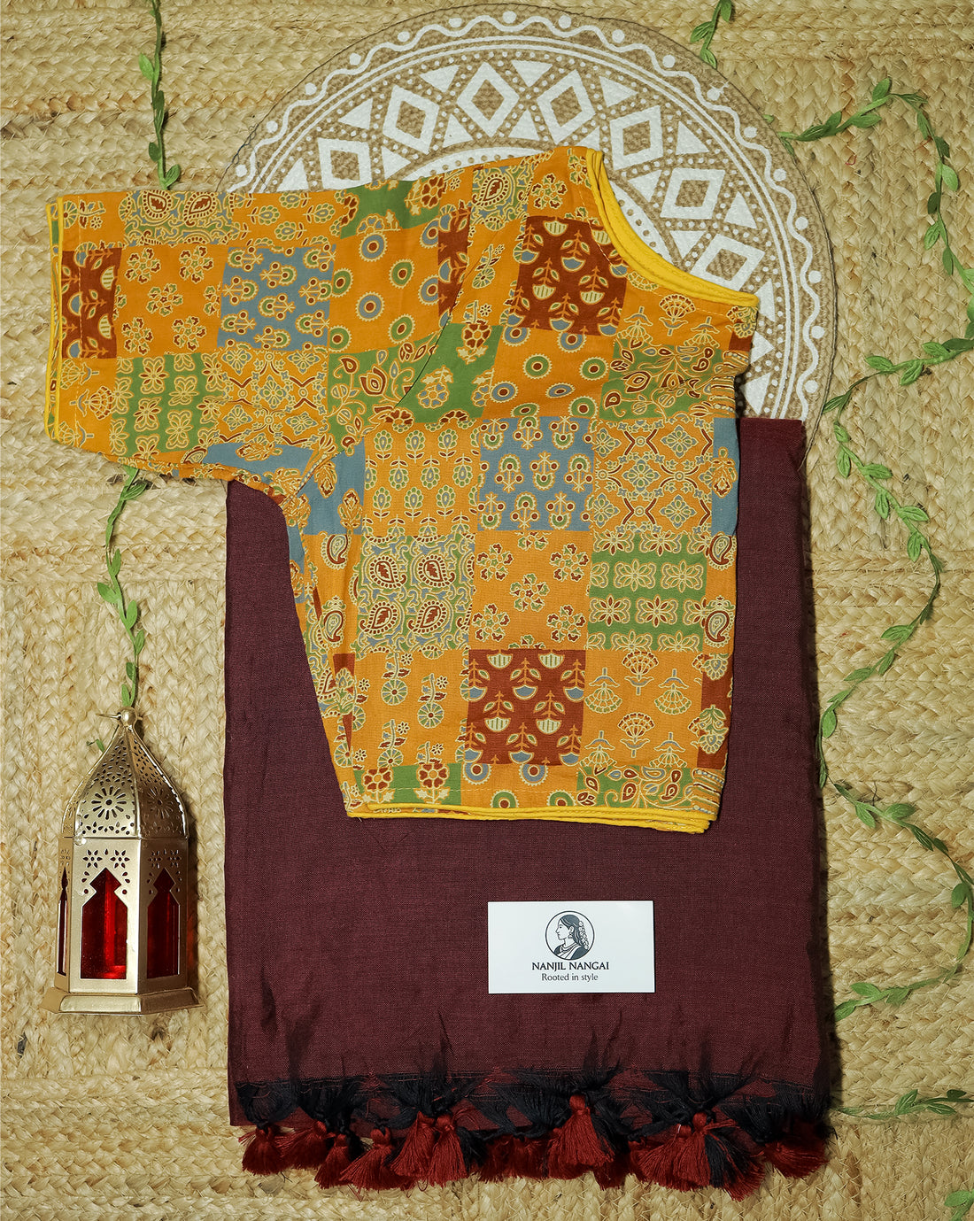 AALAM COMBO (KHRBNN21) - Premium Khadi Cotton Saree with Stitched Blouse