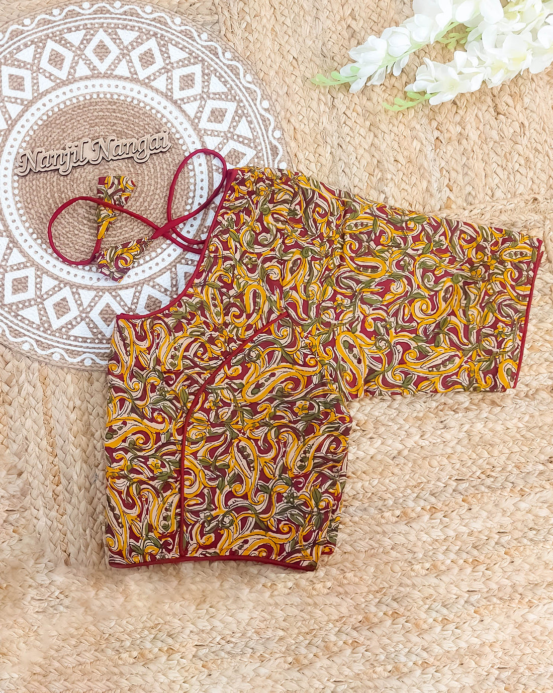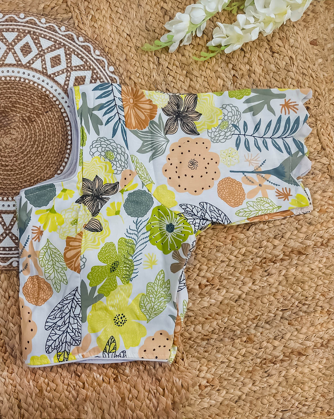 Blouse Description Experience authentic craftsmanship with this Pure Cotton Reaymade Blouse, blending traditional block-print artistry...