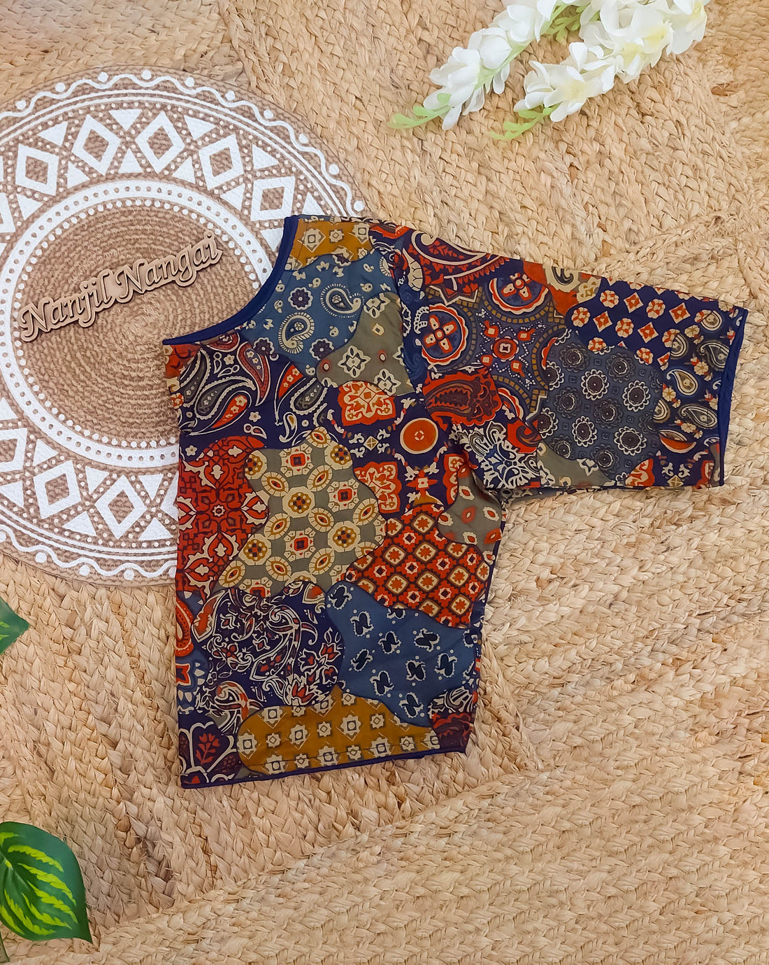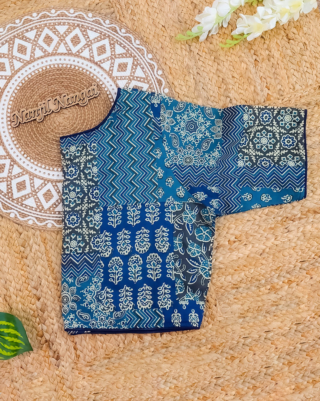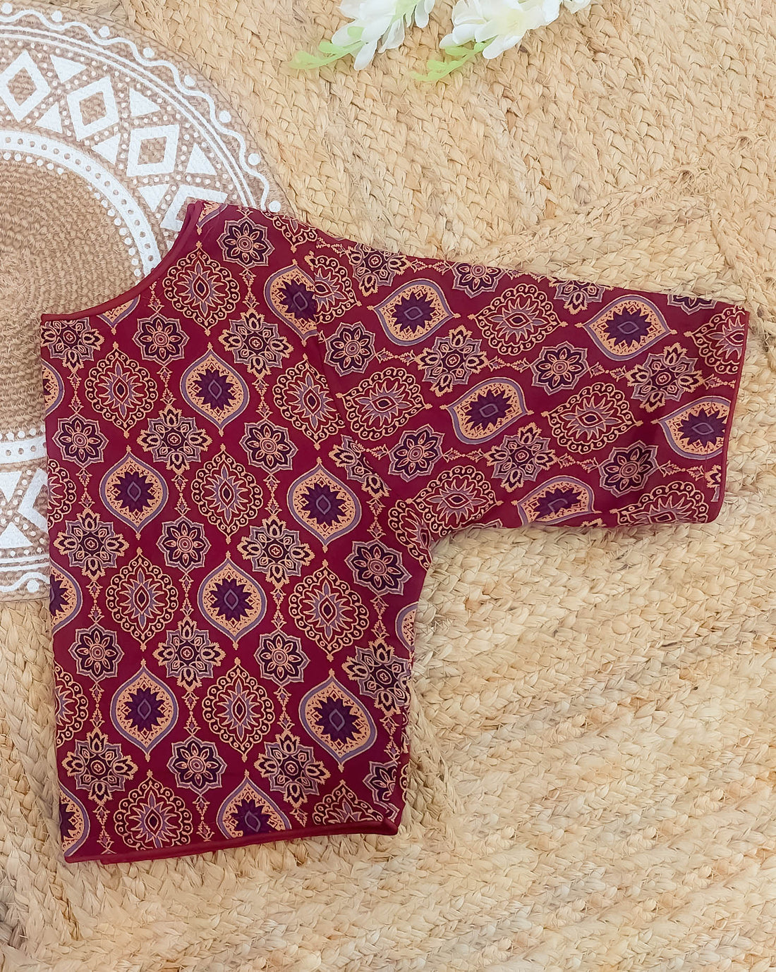 Blouse Description Experience authentic craftsmanship with this Pure Cotton Readymady Blouse, blending traditional block-print artistry...