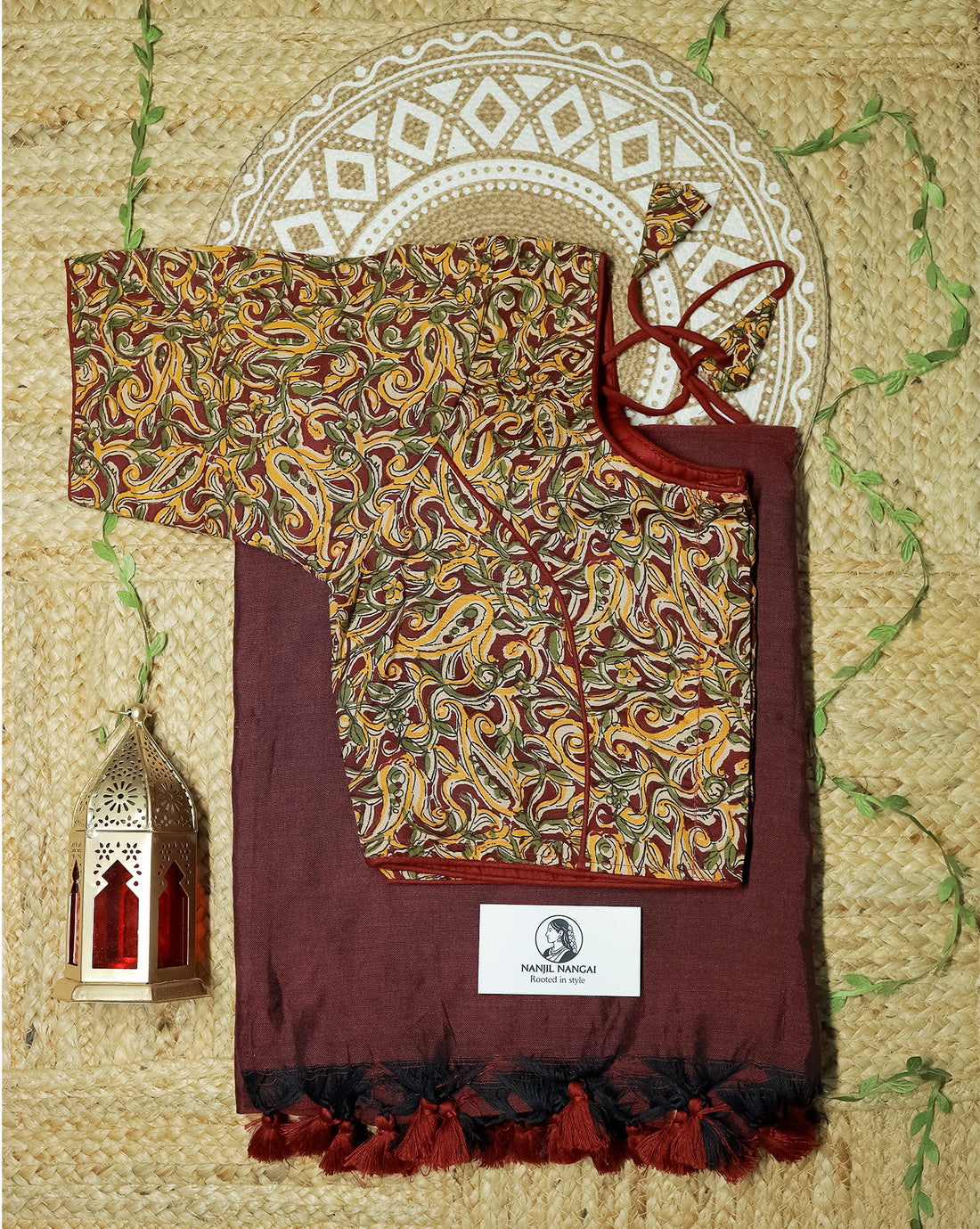 THAMARAI COMBO (KHRBNN9) - Premium Khadi Cotton Saree with Stitched Blouse