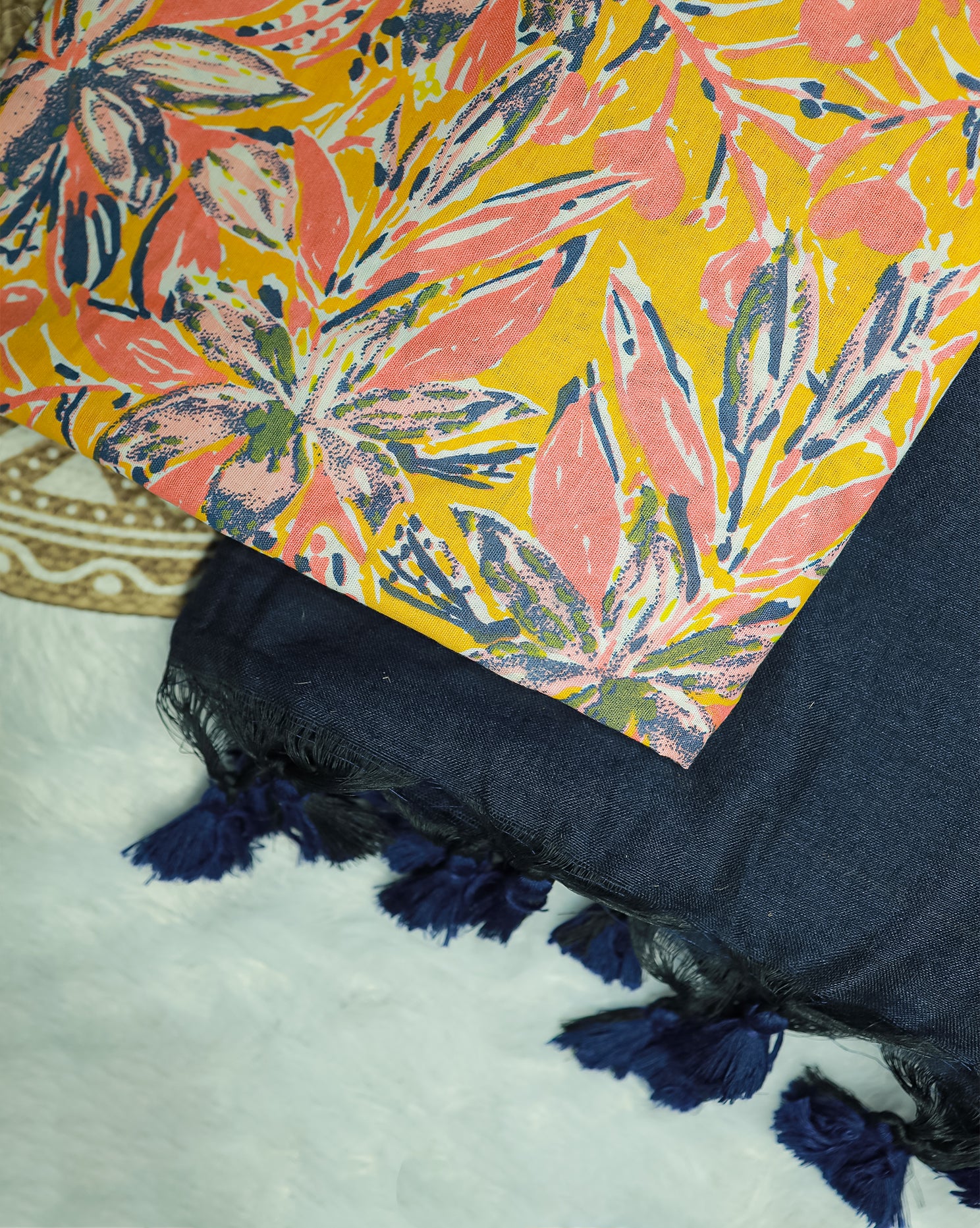 Woven from pure khadi cotton, this saree exudes timeless elegance with its natural texture and breathable comfort. Paired with a matching unstitched cotton blouse material, it offers the freedom to tailor a fit that reflects your personal style. A blend of tradition and versatility, this combo is perfect for both everyday grace and special occasions.