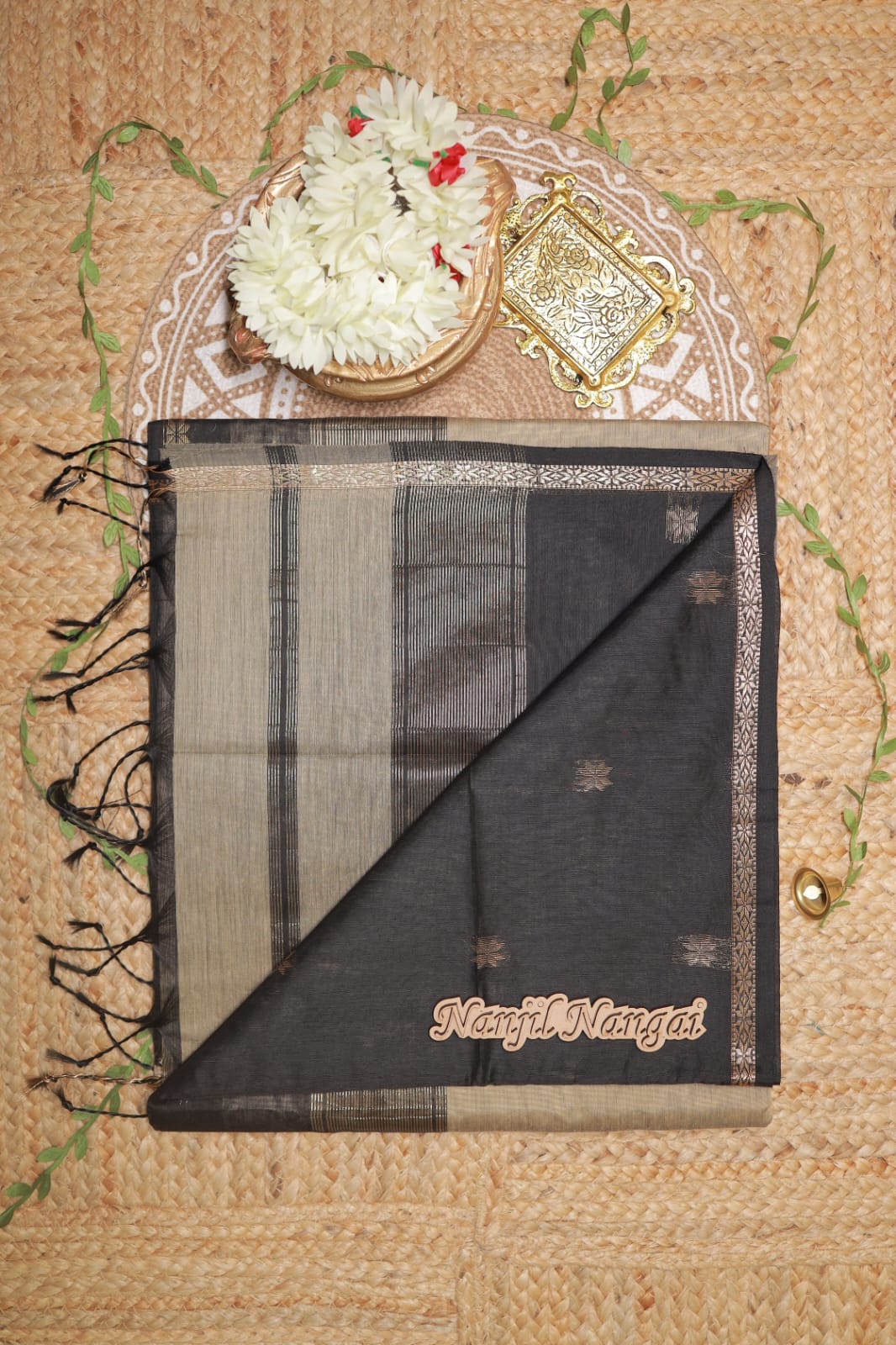 Woven in the traditional Maheshwari handloom style, this cotton saree features a beautiful contrast colour combination with delicately spread buttas across the body. The fine cotton texture offers breathability, a soft fall, and a subtle sheen, making it a graceful choice for office wear, festive occasions, and refined everyday elegance.