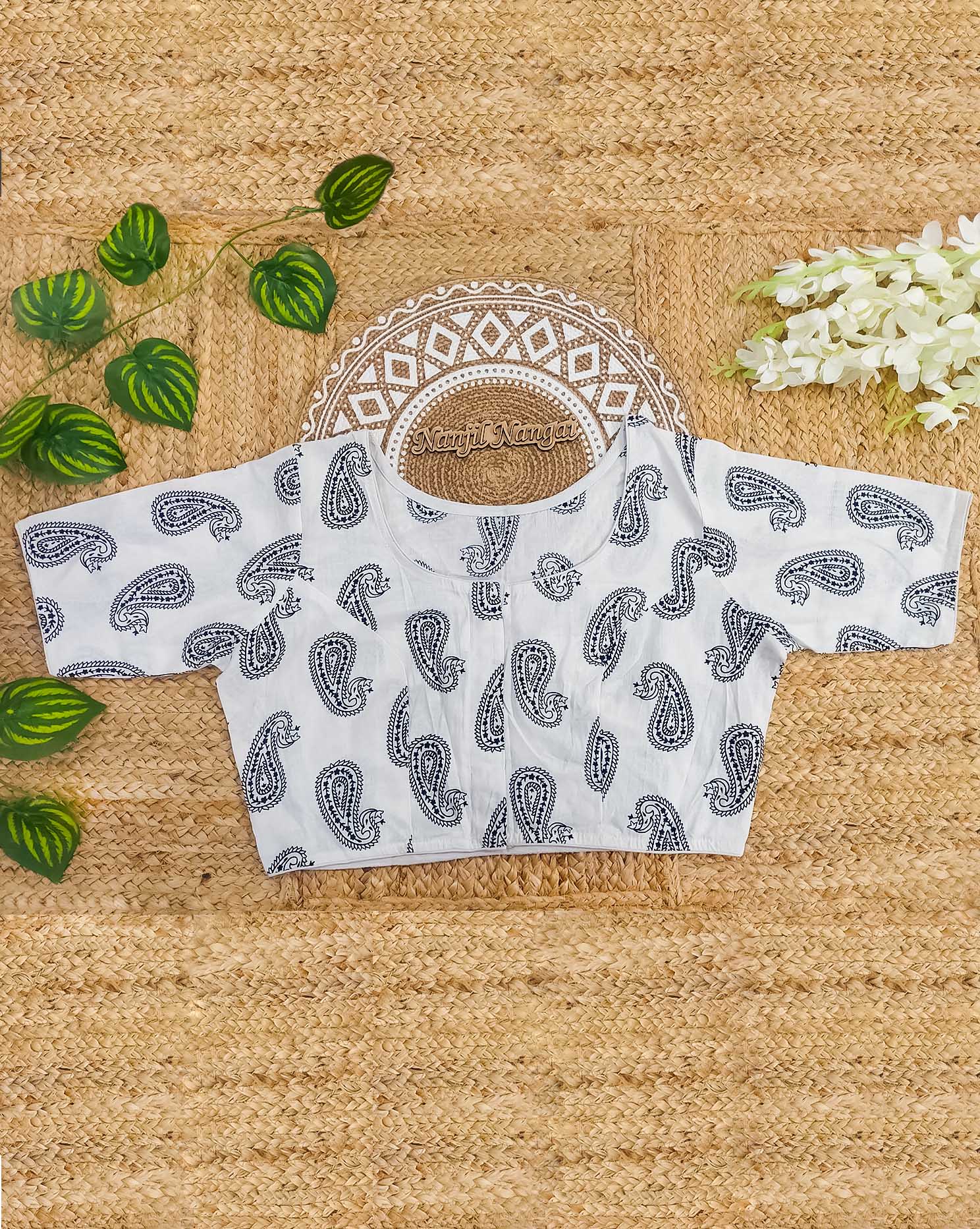 Experience authentic craftsmanship with this Pure Cotton Readymade Blouse, blending traditional block-print artistry and breathable fabric for timeless comfort.