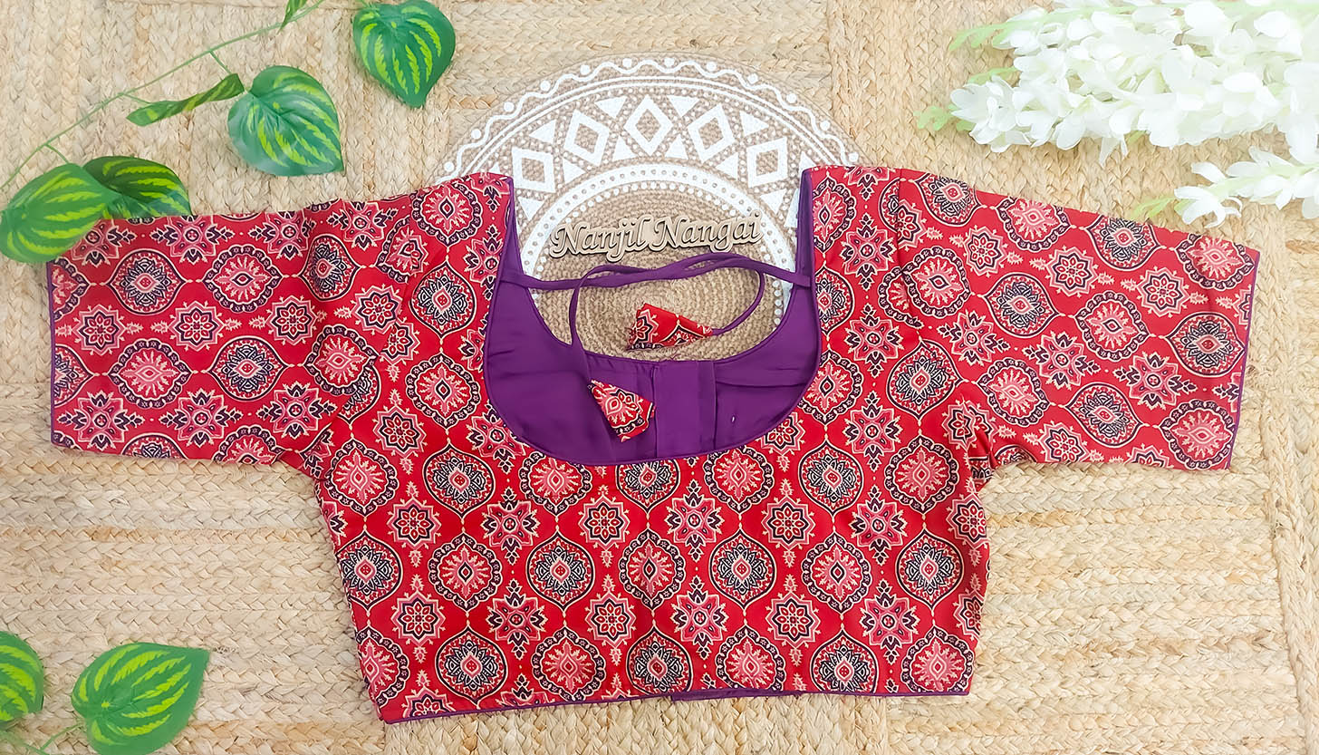 Experience authentic craftsmanship with this Pure Cotton Readymade Blouse, blending traditional block-print artistry and breathable fabric for timeless comfort.